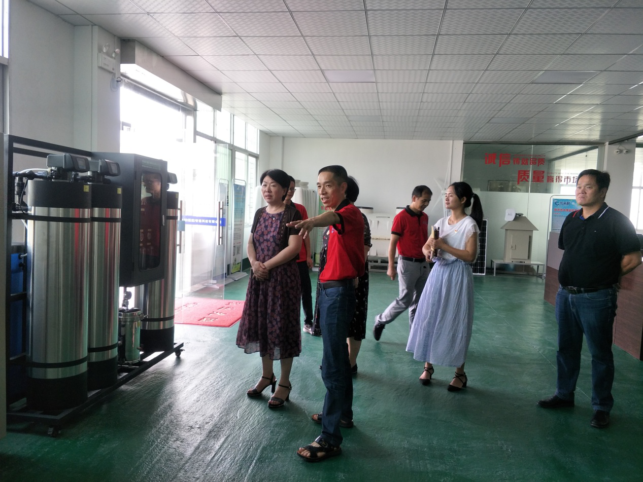 在公司總經(jīng)理的陪同下,向羅部長(zhǎng)一行介紹了公司智能化凈水設(shè)備